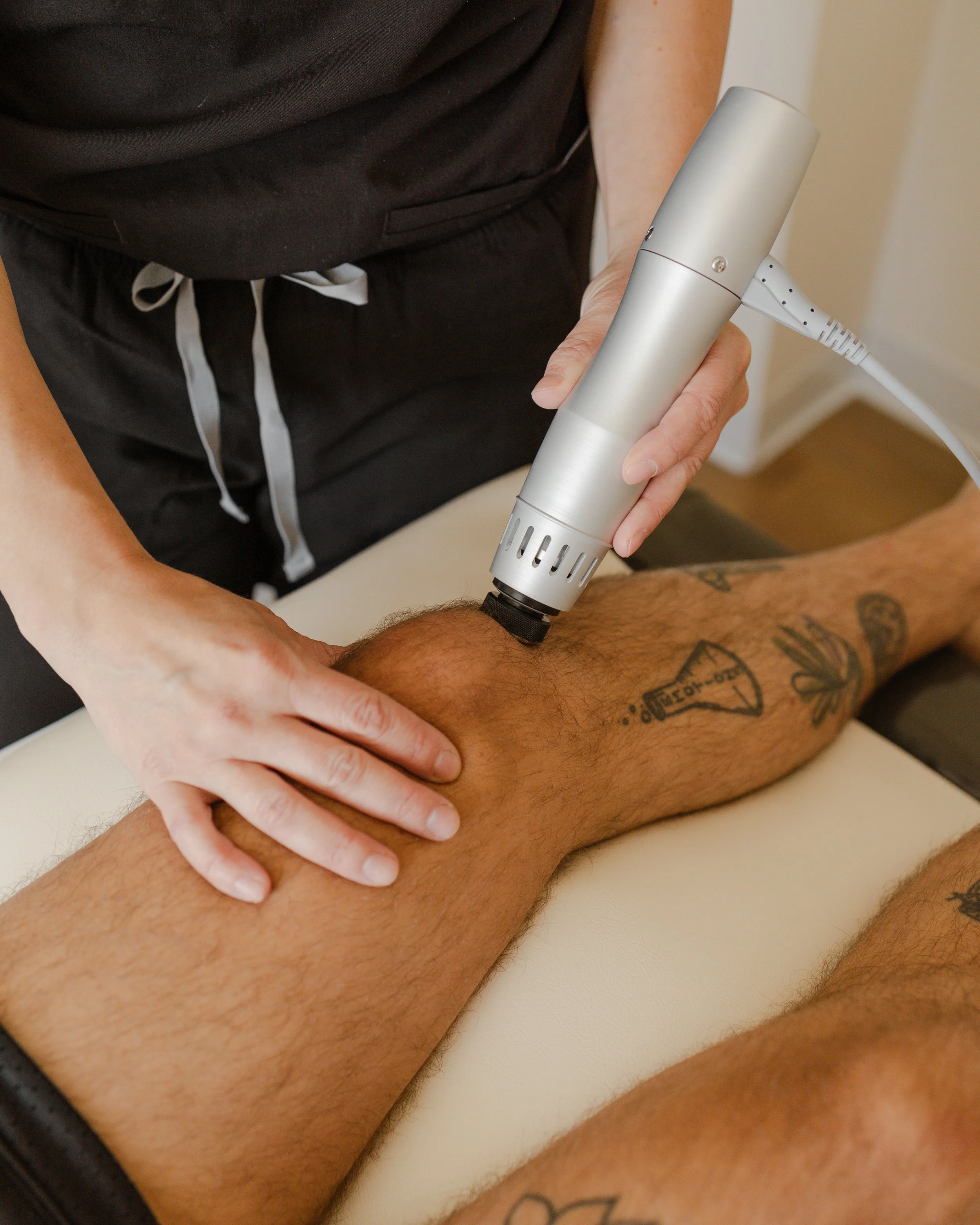 Shockwave Therapy uses targeted high-energy acoustic waves to stimulate the body’s natural healing response in injured tissues. By increasing circulation and triggering cellular repair processes, it helps reduce inflammation, break down calcifications, and accelerate recovery in muscles, tendons, and connective tissue.